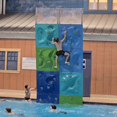 Jump off the one-metre diving board or climb on our one-storey rock wall